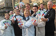 Weihnachtsstimmung auf dem Düsseldorfer Nikolaus-Markt Insgesamt 28 Weihnachtsmänner und -frauen in den Farben der Olympiabewerbung von Düsseldorf Rhein-Ruhr 2012 versetzten am Nikolaustag die Düsseldorfer in "Olympische Weihnachtsstimmung". Mit dabei unter anderem Joey Kelly, Künstler, Konzertmanager und Extremsportler, der frühere Eishockey-Nationalspieler Andreas Niederberger, Sabine Braun, Siebenkampf-Bronzemedaillen-Gewinnerin. |