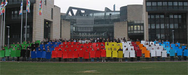 Kinder bauen Olympisches Dorf Im Rahmen der Kinder- und Jugendaktion der Düsseldorf Rhein-Ruhr 2012 GmbH "Wettlauf der Farben" starteten am Nikolaustag Kinder aus der Region Düsseldorf Rhein-Ruhr eine ganz besondere Vorweihnachtsaktion. Angeregt durch das Werkstattverfahren bauten sie sich ein Olympisches Dorf. "Unsere Spiele - so bunt wie die Welt" war das Leitmotiv für die ebenso bunte Gruppe Kinder und Jugendlicher im Alter von vier bis sechzehn Jahren. Die jungen Künstler bastelten zusammen zwölf bunte Lebkuchen-Häuser, dekoriert in den Farben der Olympiabewerbung von Düsseldorf Rhein-Ruhr 2012. "Wenn das Olympische Dorf 2012 nur halb so schön wird wie unseres, dann ziehen die Sportler und Sportlerinnen bestimmt gerne ein", so das gemeinsame Fazit der Gruppe. |