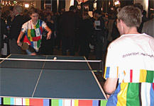 Olympia-Fieber! 1 100 geladene Gäste aus Sport, Politik, Kultur und Wirtschaft trafen sich am 25. Oktober zur vierten Paralympics Night in der Stadthalle der Düsseldorfer Messe. Auch die Düsseldorf Rhein-Ruhr GmbH sorgte bei der Benefiz Sportgala des Deutschen Behindertensports für ein farbenfrohes Programm. Zwei Bodypainter in den Farben der Olympiabewerbung von Düsseldorf Rhein-Ruhr warben für die Spiele an Rhein und Ruhr. Darüber hinaus gab es ein spannendes Tischtennis-Match zwischen Jochen Wollmert, Paralympics-Sieger 2000 in Sydney, und dem amtierenden deutschen Meister der offenen Klasse Andreas Nau, die beide im "Olympia-Trikot" für Düsseldorf Rhein-Ruhr spielten. Unter den Gästen befanden sich zahlreiche Olympiabotschafter wie Zehnkämpfer Jürgen Hingsen, Daisy Lang, Box-Weltmeisterin, Schwimm-Weltmeister Thomas Rupprath, Christian Keller, Bronzemedaillen-Gewinner bei den Olympischen Spielen 1996 in Atlanta oder Lindenstraßen-Star Liz Baffoe. |