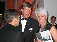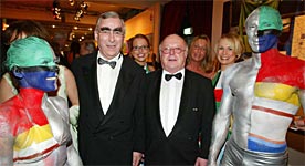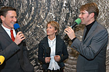 von links nach rechts: Michael Zilles, Uwe Spiegel, Udo Hempel | "Olympische Welten": Düsseldorf Rhein-Ruhr beim Ball des Sports in Frankfurt Ganz im Zeichen der deutschen Bewerbung um die Olympischen Spiele 2012 stand der diesjährige Ball des Sports der Stiftung Deutsche Sporthilfe am 1. Februar 2003 in der Frankfurter Festhalle. Selbstverständlich war auch die Düsseldorf Rhein-Ruhr 2012 GmbH mit hochkarätigen Gästen in Frankfurt vertreten. Unter anderem waren Nordrhein-Westfalens Ministerpräsident Peer Steinbrück, Sportminister Dr. Michael Vesper und Joachim Erwin, Oberbürgermeister der Stadt Düsseldorf, Heide Ecker-Rosendahl, Doppelolympiasiegerin von München und Präsidentin des Bewerbungskomitees von Düsseldorf Rhein-Ruhr, sowie zahlreiche "Olympiabotschafter" waren mit dabei. Isabell Werth und Sabine Braun präsentierten sich in den Farben der Olympiabewerbung von Düsseldorf Rhein-Ruhr. |