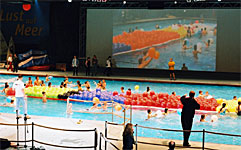 Bunte (Wasser-) Spiele für 2012 Der "Wettlauf der Farben", die Kinder- und Jugendaktion der drr 2012 GmbH startete mit 60 Kindern der 4.Klassen der Düsseldorfer Heinrich-Heine-Schule einem farbenfrohen Wasserspaß im Aktionsbecken der BOOT 2003, der größten Boots- und Wassersportmesse der Welt. In zwei konkurrierenden Teams setzten die Kinder aus einer bunten Mischung von 1.000 Luftballons, das bunte Signet unserer Olympiabewerbung zusammen. Erlaubt waren alle möglichen Schwimm- und Tauchmanöver im Wasser. Was zählte: Teamgeist, Schnelligkeit. Köpfchen!!! Angefeuert wurden die Kinder durch Christian Schumann, Reporter der Segelzeitschrift YACHT und Christian Keller, Schwimmstar und Olympiabotschafter Düsseldorf Rhein-Ruhr 2012. |