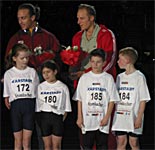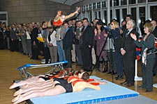 9. Sparkassen Indoor-Meeting ganz im Zeichen der Olympiabewerbung von Düsseldorf Rhein-Ruhr Acht "Olympiabotschafter" und acht talentierte Nachwuchssportler aus der Bewerberregion gingen bei der "Prominentenstaffel" gemeinsam an den Start. Mit dabei waren Sabine Braun, Jürgen Hingsen, Willi Wülbeck, Ulrike Nasse-Meyfarth, Anke Feller, Lutz Liwowski, Marina Kielmann und Paralympics-Teilnehmer Jochen Wollmert. Als Nachwuchsathleten meldeten sich Tanja Vogt (TV Roetgen), Darius Rocholl (TV Korchenbroich), Sümra Kaya (SC Eintracht Hamm), Alexander Böhm (DJK Adler Bottrop) und Julius Elting (VFL Gladbeck). Nach dem Rennen drehten die Teilnehmer der Staffel, verstärkt durch weitere prominente "Olympiabotschafter" wie Udo Hempel, Jens Deimel, Stephan Volkert, Volker Grabow, Mirko Englich und Rüdiger May, eine Ehrenrunde. |